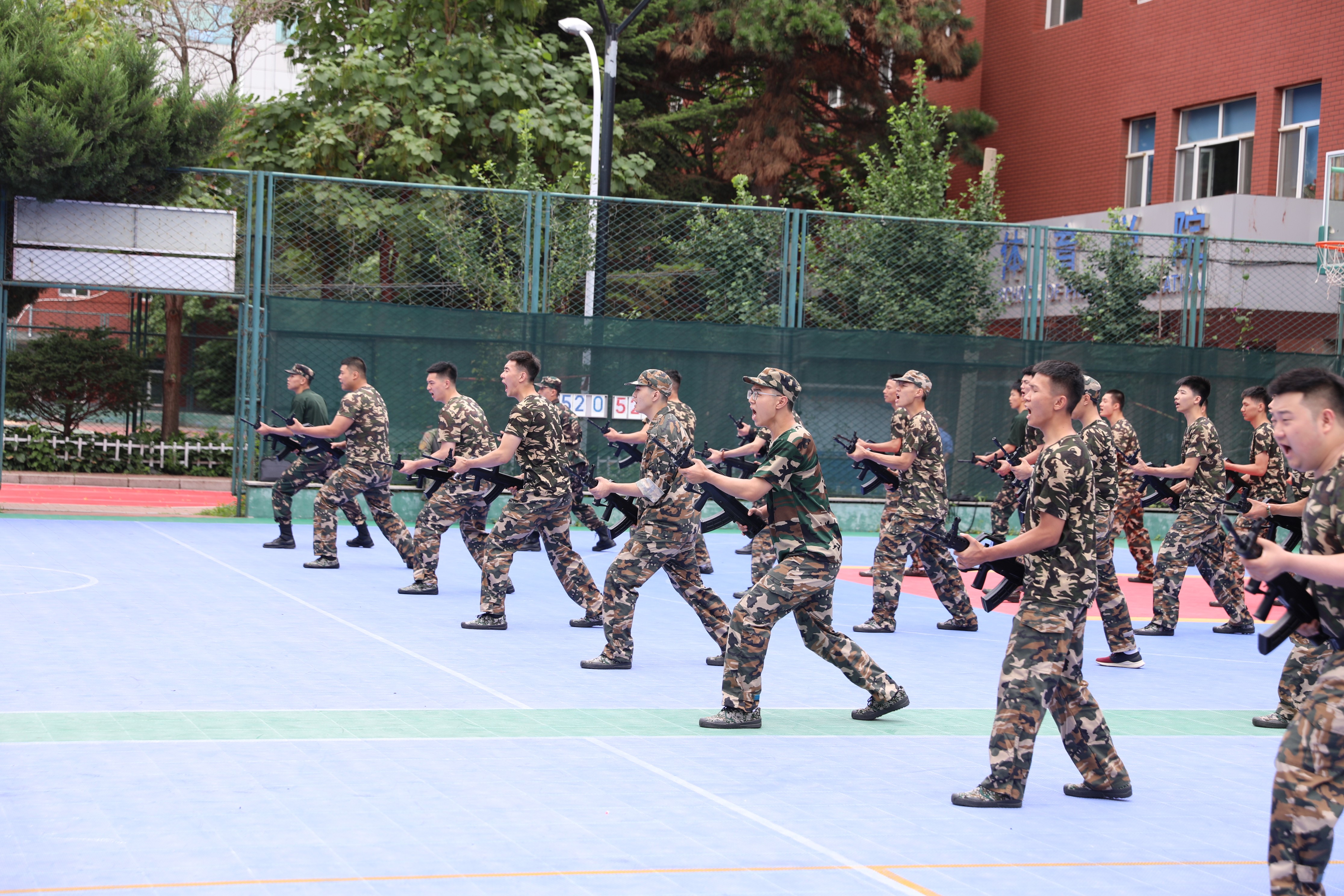 对于他们而言,这不仅仅是一场训练,更是一次超越自我的冒险、一段充满收获的旅程。面对持续两周的体能训练和壮阔的战术演练,东师学子迎难而上,克服夏日的炎热和雨水的潮湿,不断磨练自己的意志。他们奔跑在操场上,呐喊声和笑声交织成一幅欢快的画卷。在这个阳光明媚的早晨,他们将锻炼着自己的体魄,用汗水浇灌着坚强的意志。